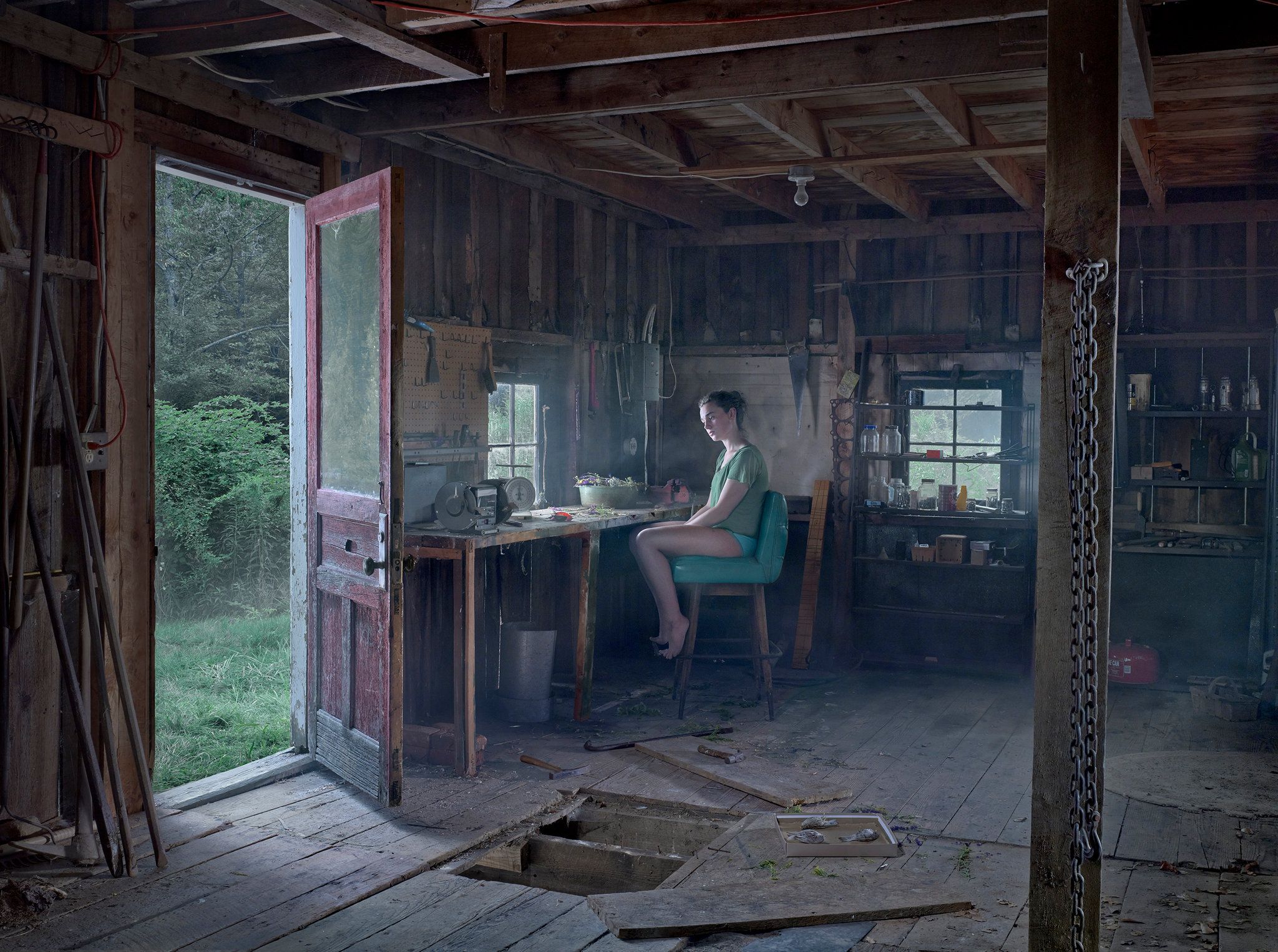 Yeah, I mean that’s the question, really, in the end. And I don’t really have an answer except for the fact that if I look at the progression of my work from the early images through my most recent pictures, there is definitely an attempt to distill that story more and more as time goes on. If you look at Twilight, for example, when I first started using cinematic lighting and I became more engaged with narrative, the stories were more literal and explicit. The lighting was more hyperbolic or more saturated, and I think partially it’s because at that time I was intoxicated by the possibility of using light in cinematic ways and using cinematic production generally. But I think for each body of work, the story that’s being told becomes increasingly more submerged and interior. There’s very little actually happening in any of the new pictures—they’re emptied out of conventional storytelling, I think.